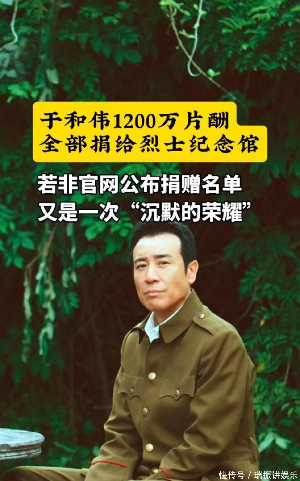 近日,“于和伟捐出1200万片酬”的消息在网络引发热议。有说法称,他拍完《沉默的荣耀》后,将这部作品的全部片酬1200万元,捐赠给了吴石烈士纪念馆。